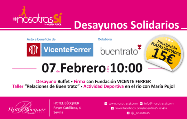 #nosotrasSÍ y Buentrato se suman a la lucha contra la pobreza en la India La asociación, presidida por la triatleta María Pujol, apoyará a la Fundación Vicente Ferrer celebrando, el próximo sábado 7 de febrero, su I Desayuno solidario a las 10.00 horas en el Hotel Bécquer en Sevilla y como a Buentrato le encantan […]